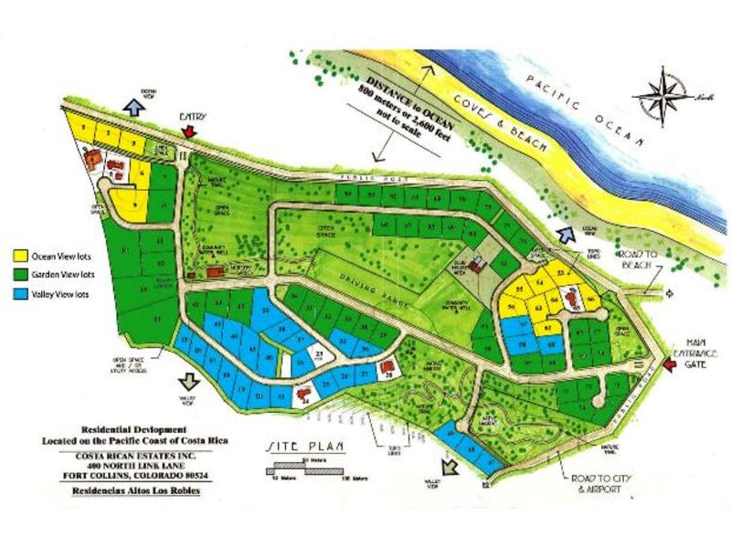 Valley/mountain view lot #15 located in the Papagayo area close to CIMA hospital and the International Liberia Airport. The lot is situated within the Altos los Robles gated community. The community consists of 55 acres offering custom lots with ocean views, valley/mountain views and nature views. A country life feeling yet close to all important services. A 10-15 minutes drive to 3 different beaches and coves including a fully protected national park with wildlife. The developer will build a home to suit or a 1,533 sq. foot home, including the lot $278,000. Or just purchase the lot, select your own builder. There are already 5 beautiful villas already built, two are available for sale. There are two other valley view lots available for sale: lot #44 with 1,041 sq. meters or 11,200 sq. ft. for $75,000, lot #26 with 706 sq. meters or 7,600 sq. ft. for $95,000. These are being offered by the developer and he has house plans for each of these lots from 1,533 sq. ft, 1,900 sq. ft. to 2,200 sq. ft.