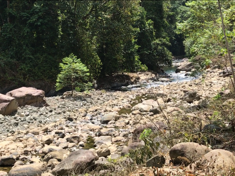 Property is surrounded by a beautiful river and a breathtaking waterfall. The retaining wall is built and the driveway has been cut. Natural and proper drainage has been done for the rainfall tropics. This area is known for its sustainable development with hydroelectricity and solar used to power the area. It is a private development with an All Inclusive Lodge.