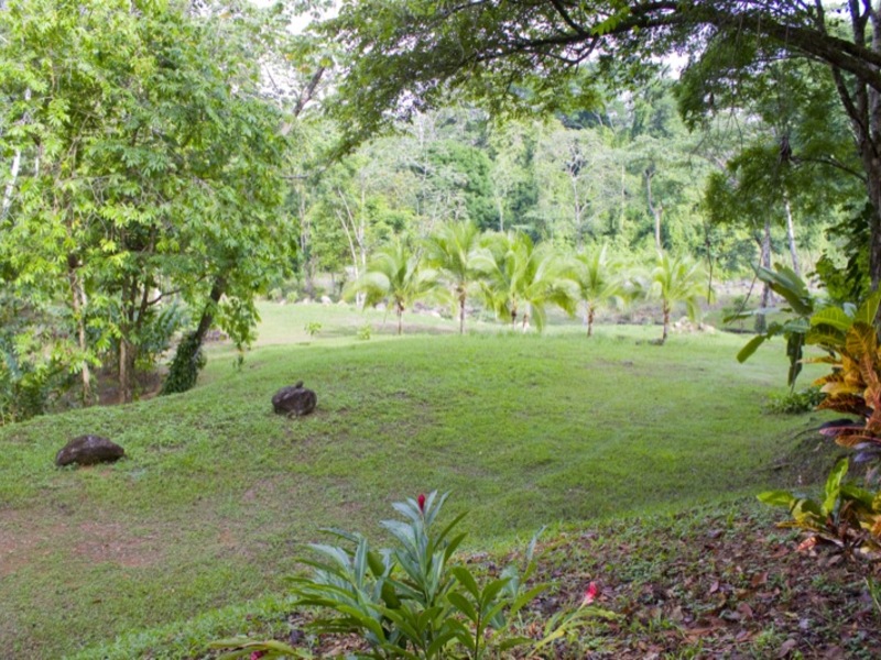 From these the land extends quite a ways over to the river. All around the area are well established ornamental plants, heliconias and palm trees. The presence of toucans, sloths and other Costa Rica wildlife is consistent.